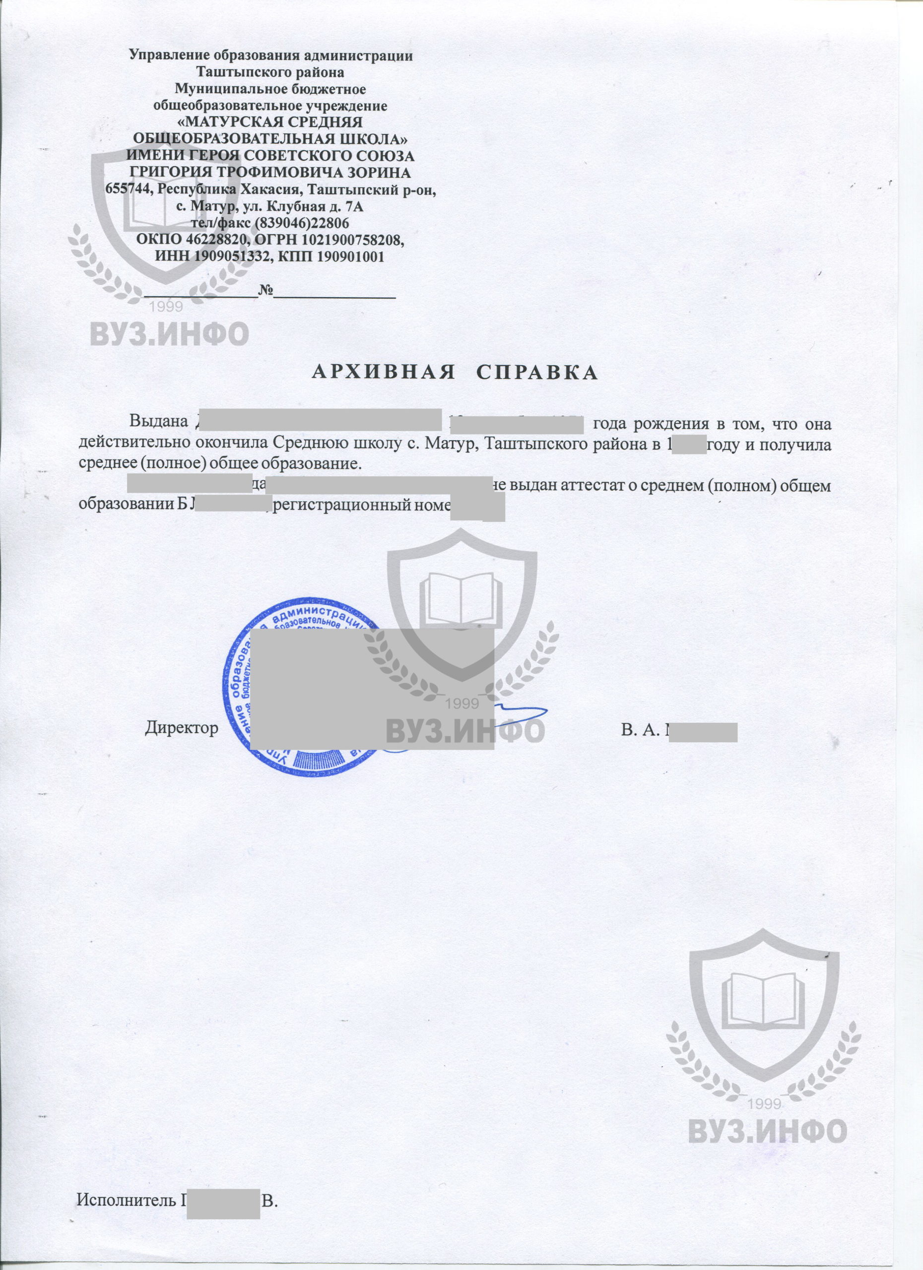 Архивная справка из школы